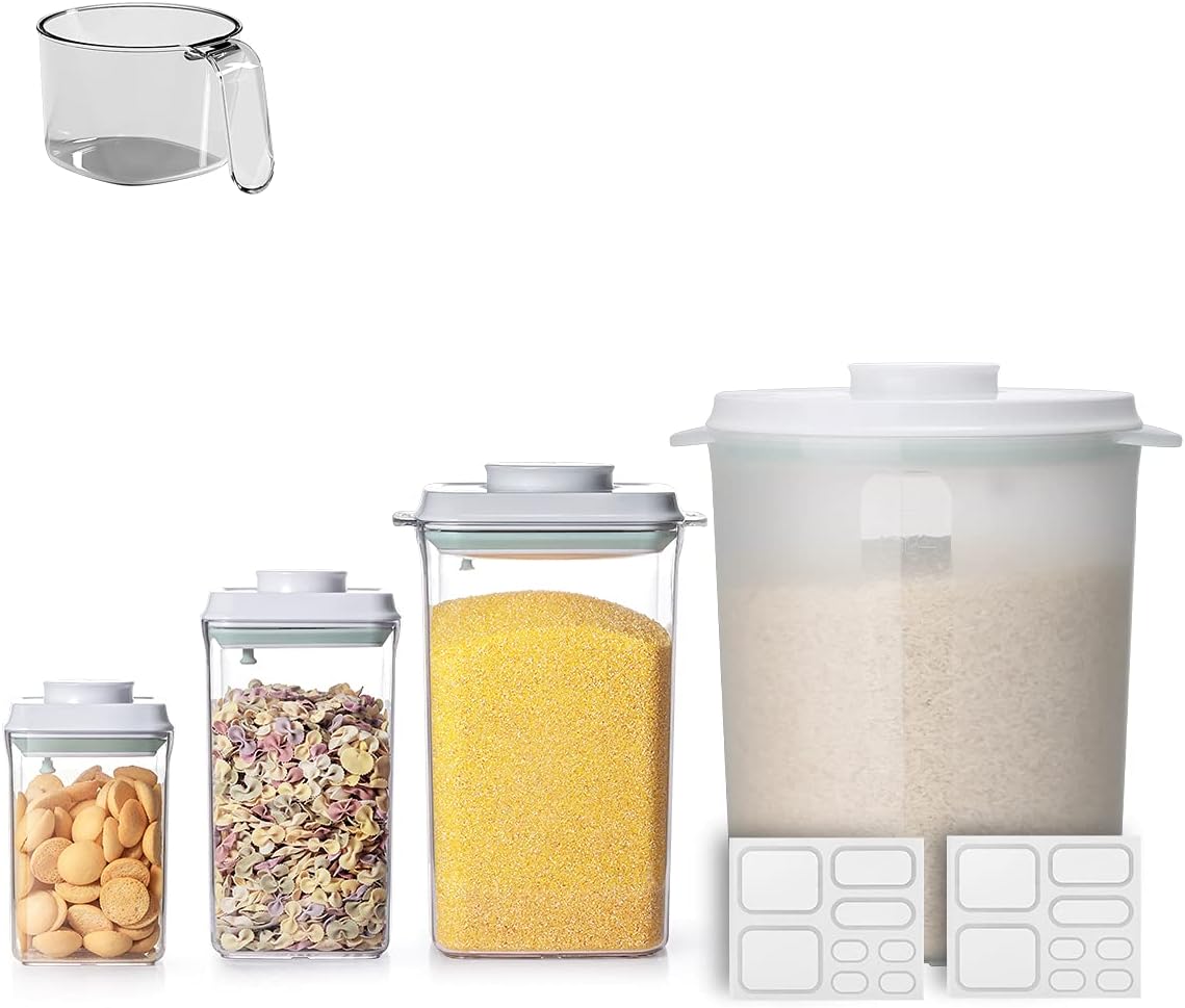 Super Brands Ankou Food Container Sets - 7.0 + 4.0 + 2.0 + 0.9 QT Pop Up Food Containers With Lids, Bpa Free Stackable Container for Rice Coffee Flour Sugar Cereals Formula - 16 Labels - Clear Simple review